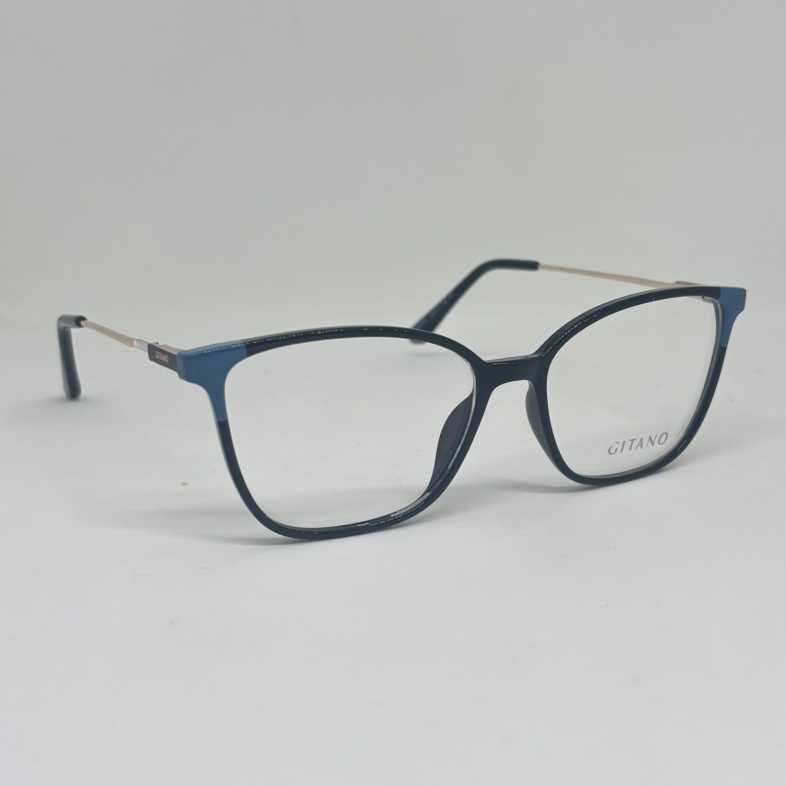 El frente presenta una estructura prolija y definida, con líneas limpias que realzan la mirada de manera sutil. El acabado en tono azul oscuro le otorga un estilo sobrio y moderno, ideal para quienes buscan un diseño elegante y fácil de combinar.