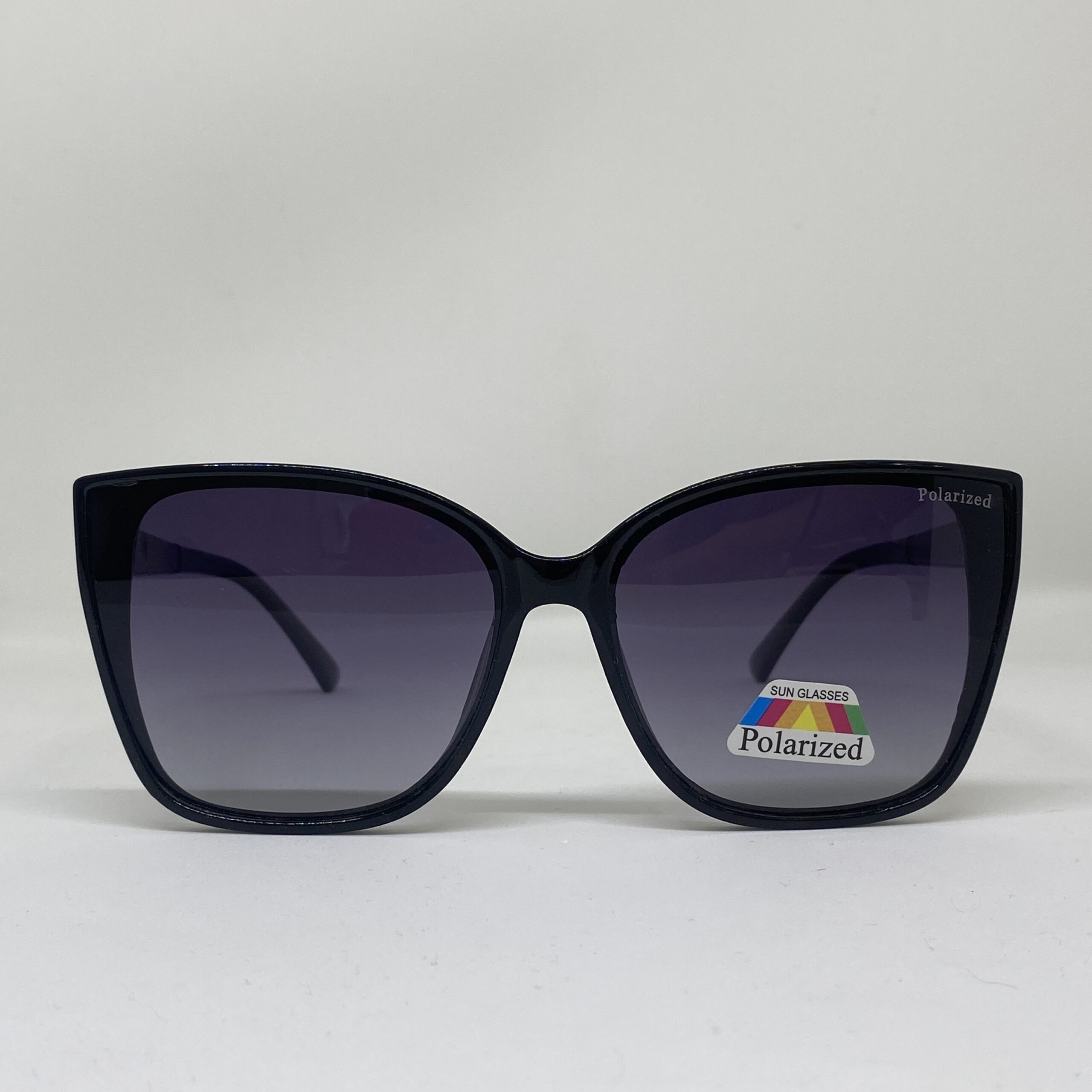 Este modelo destaca por su diseño cuadrado de gran tamaño, que aporta presencia y un estilo moderno y elegante. La montura negra con detalles metálicos laterales realza la estructura y suma un toque sofisticado sin exagerar. Sus lentes violetas degradé suavizan la luz, brindan confort visual y combinan perfectamente con la forma amplia del armazón.