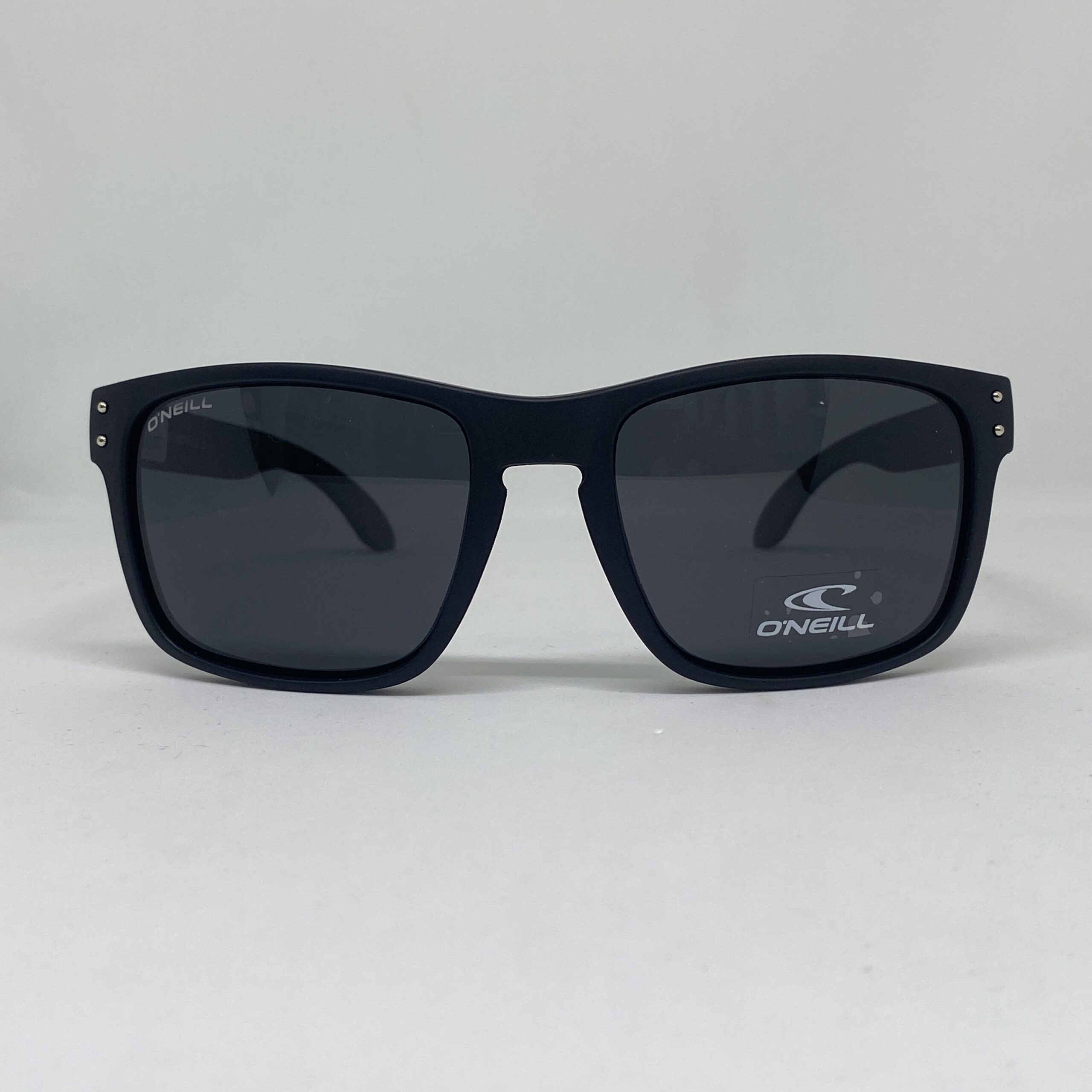 Anteojo de sol urbano rectangular en negro mate, con detalles metálicos, lentes polarizadas y protección UV 400.