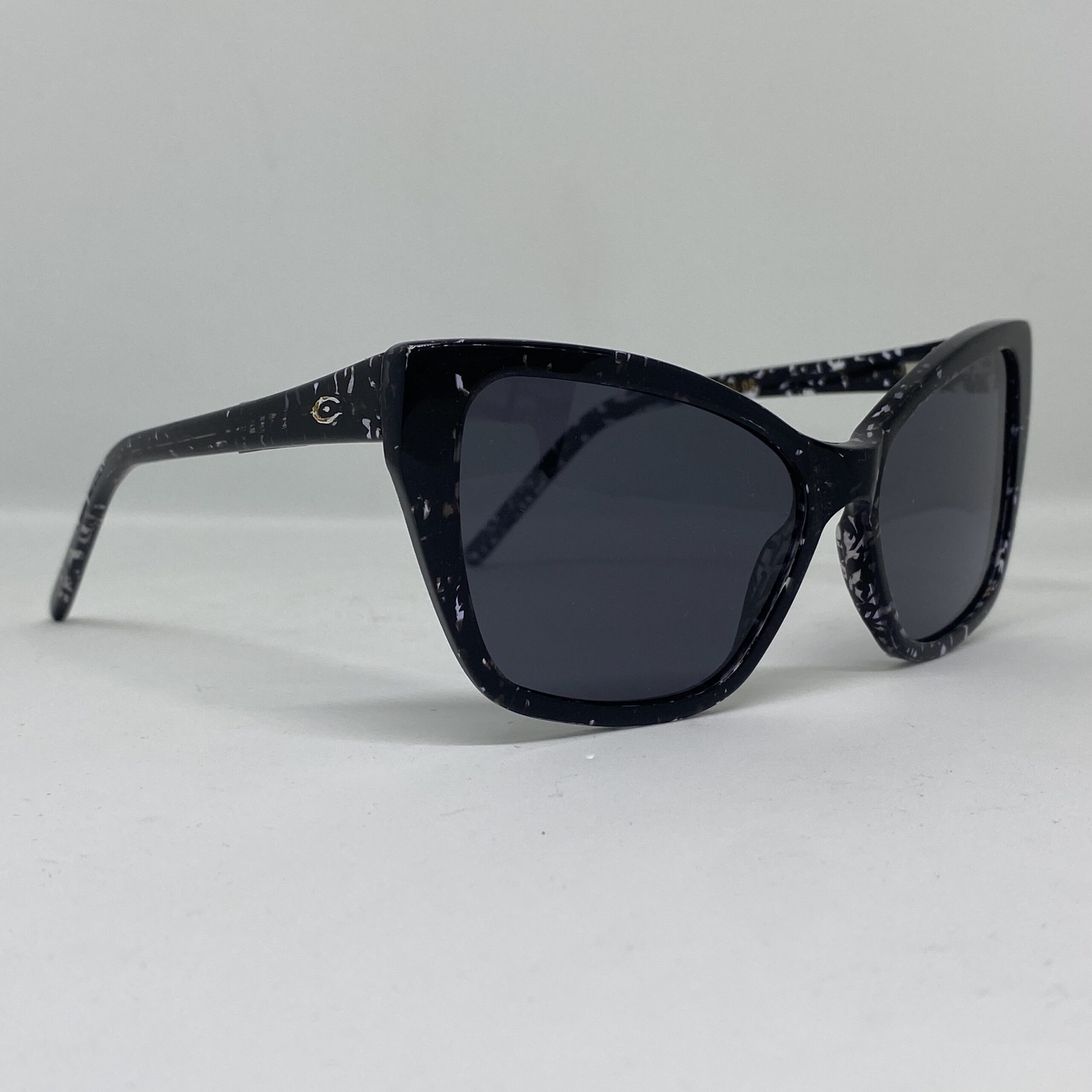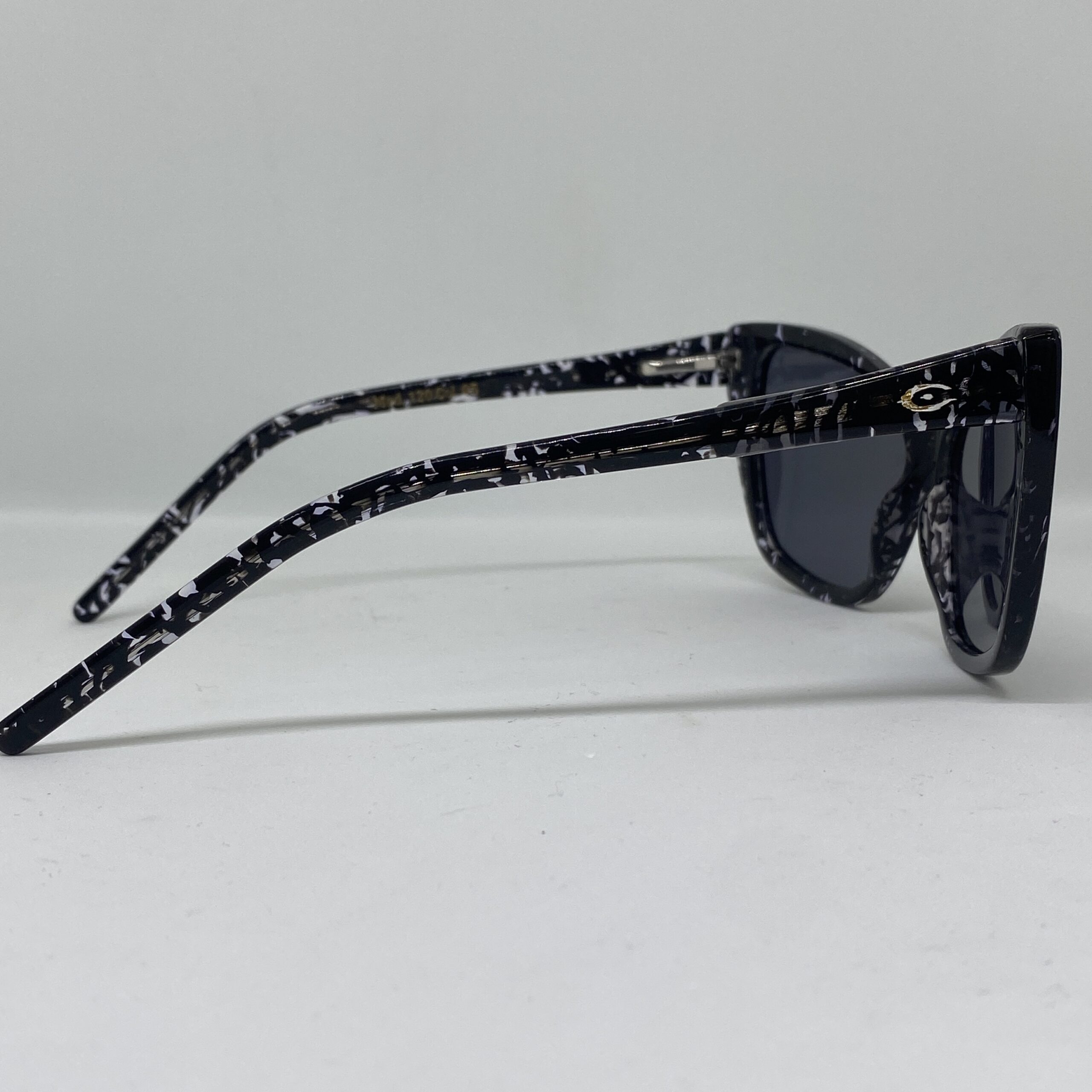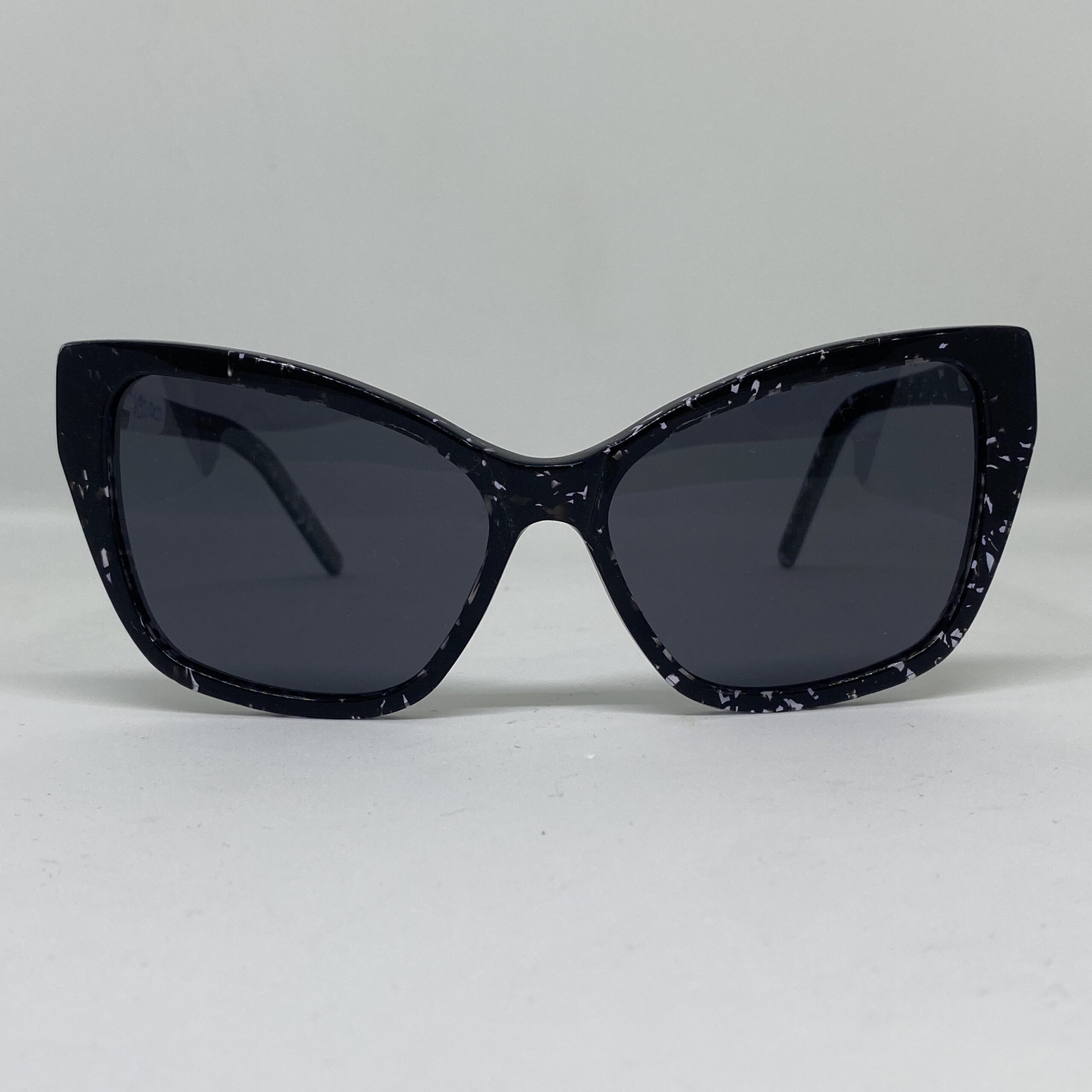 Anteojos de sol cat eye con montura negra marmolada y lentes oscuras polarizadas, con protección UV400 para una visión clara y sin reflejos.
