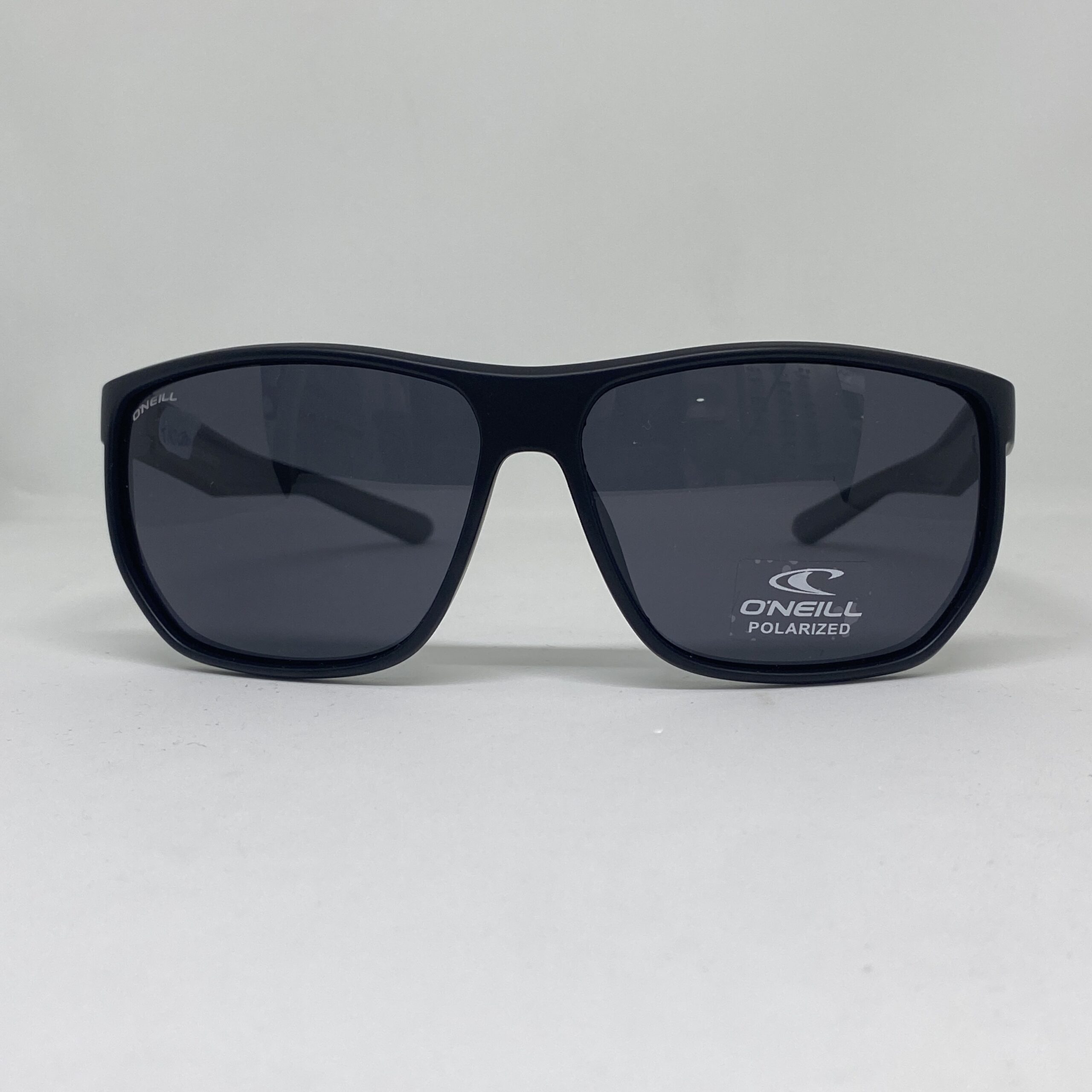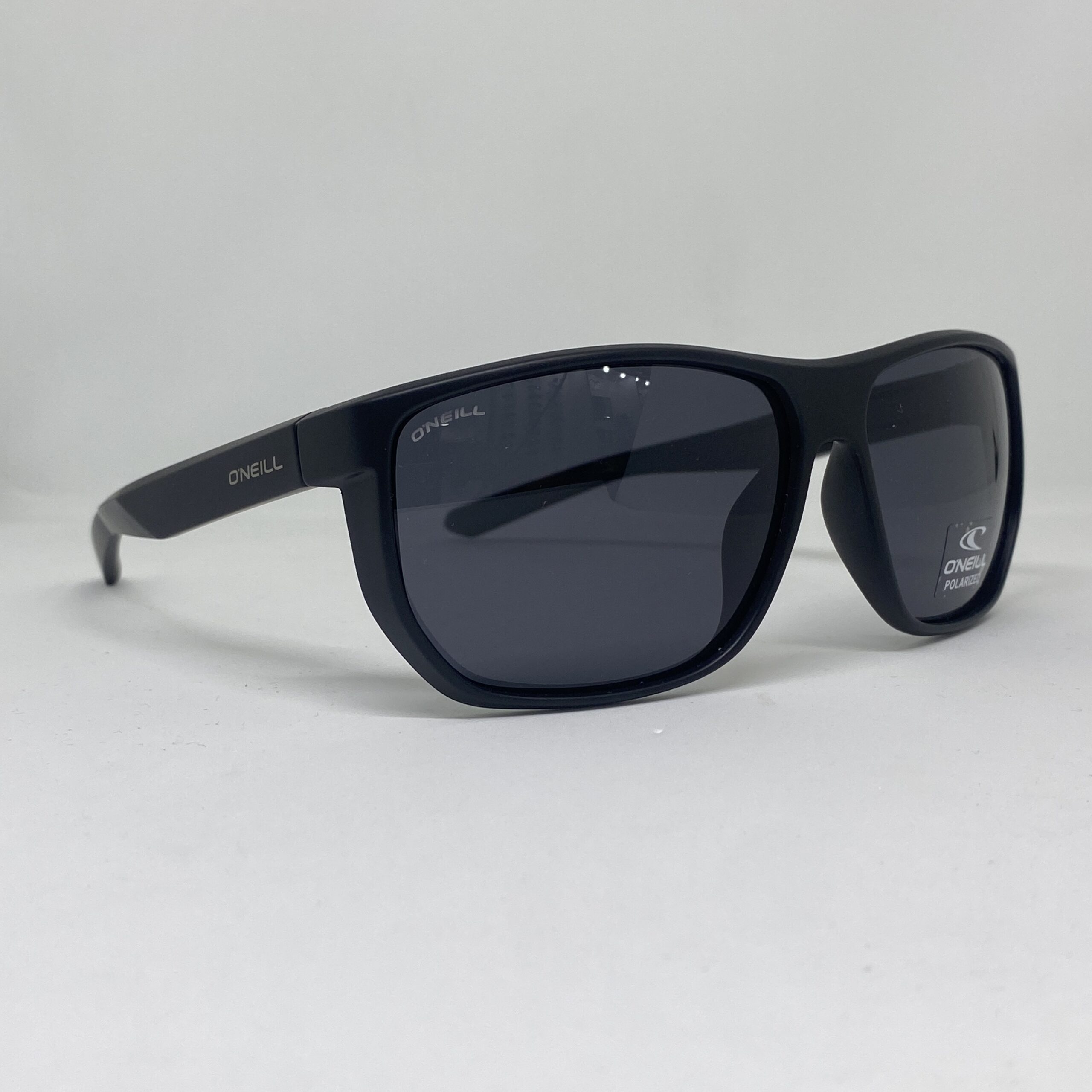 Anteojo de sol deportivo envolvente en negro mate, con lentes polarizadas y protección UV 400, ideal para actividades al aire libre.