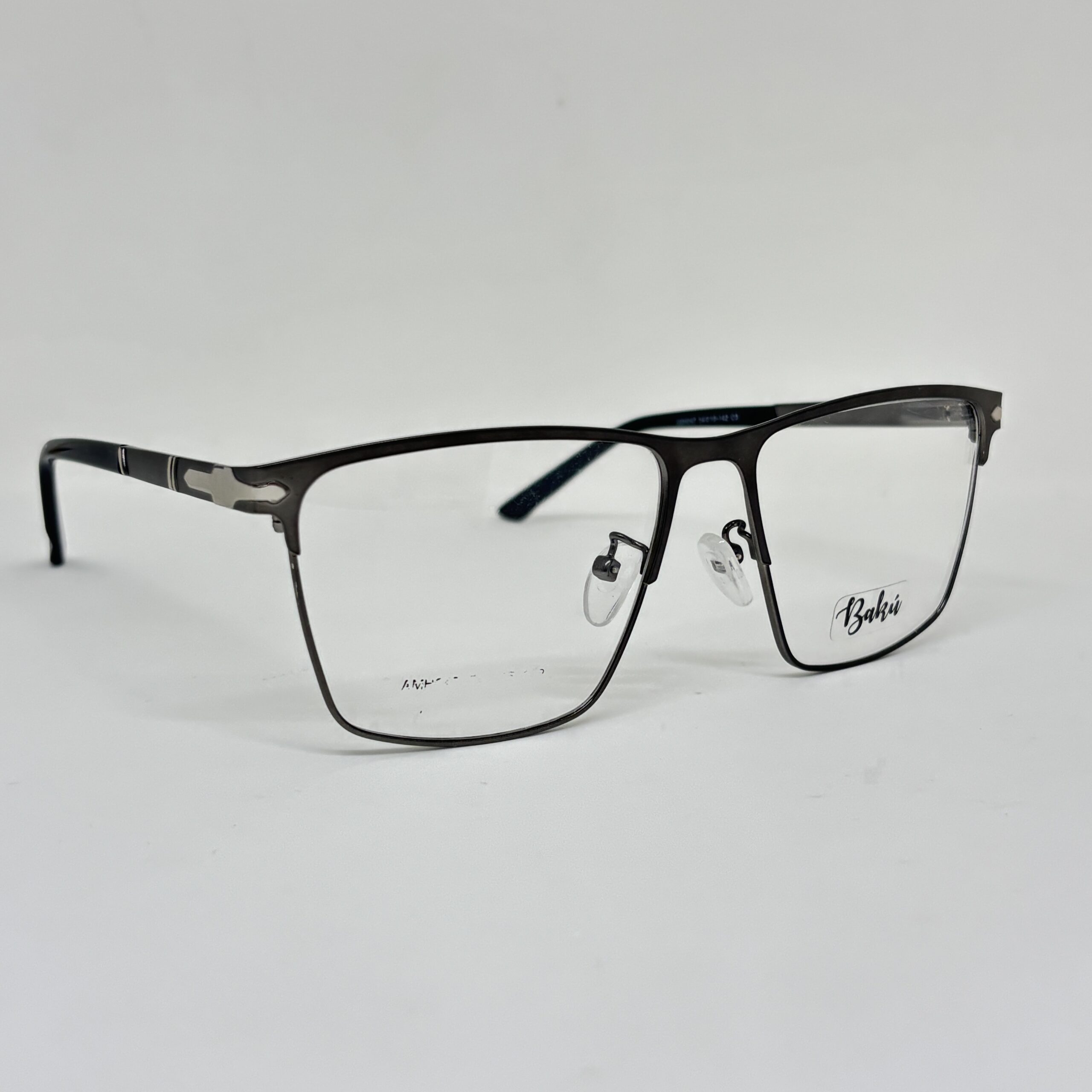 Este armazón metálico presenta un diseño moderno y elegante, ideal para quienes buscan un estilo sobrio con un toque distintivo. Su estructura completa en tono gris oscuro / negro grafito le aporta presencia y versatilidad para uso diario o profesional.