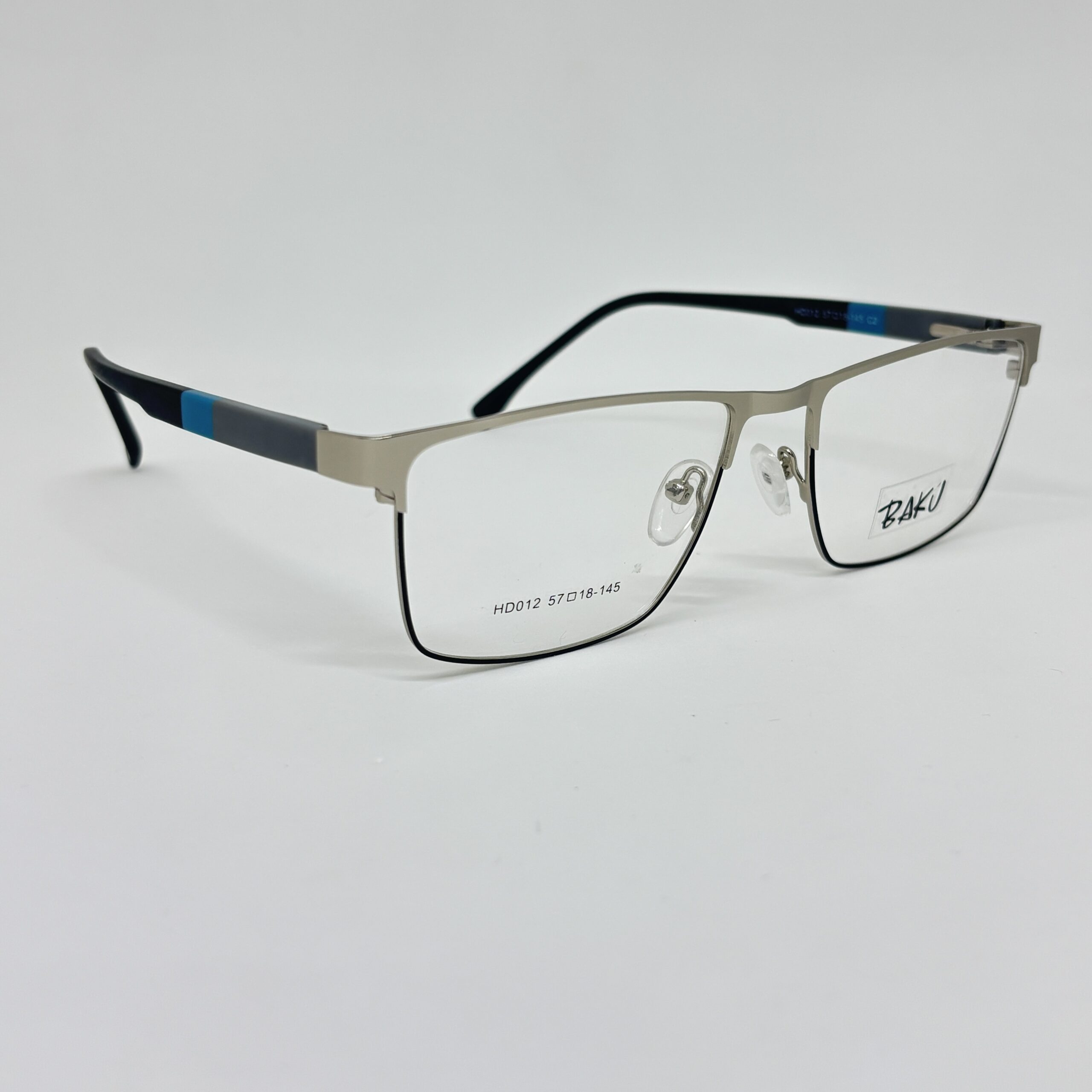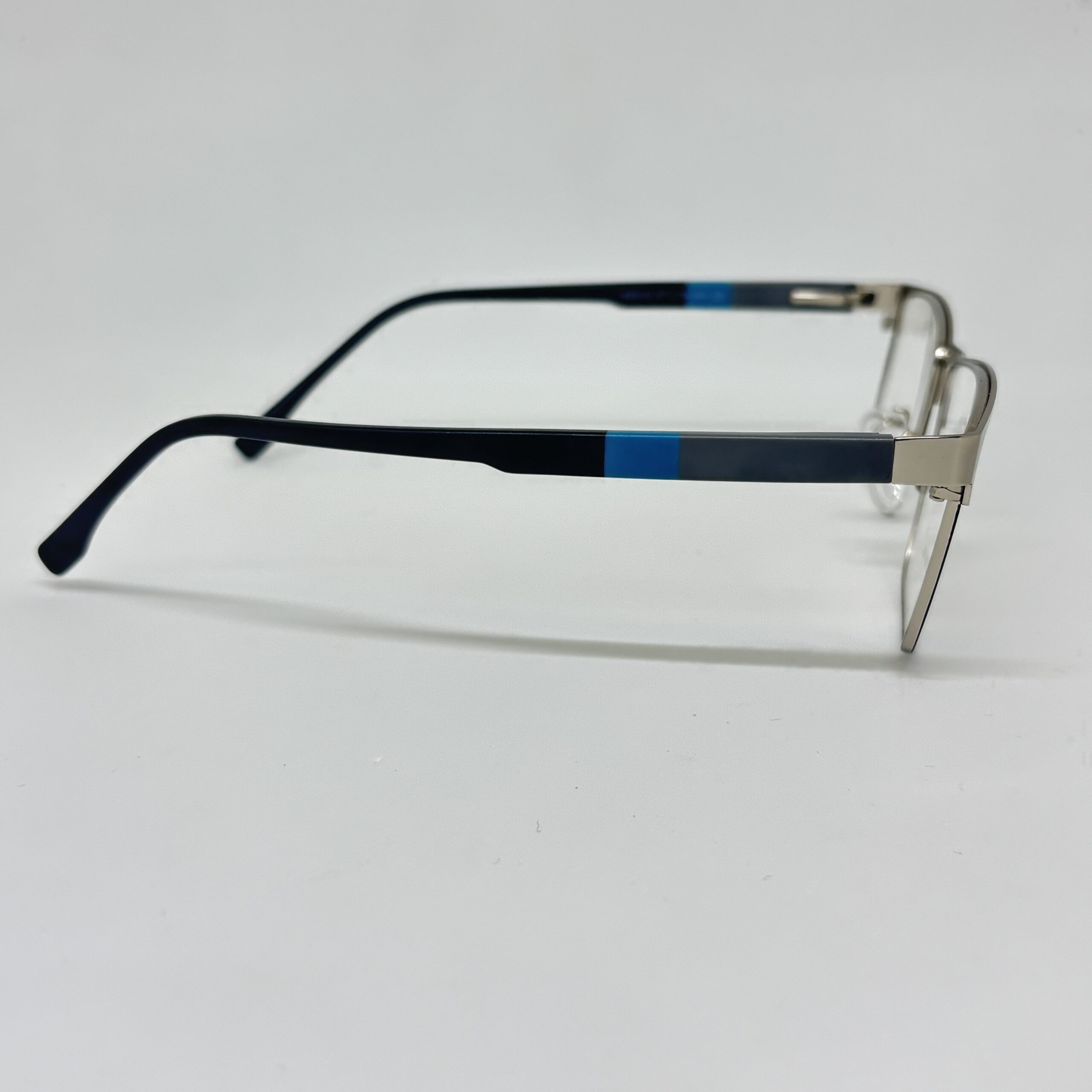 Las plaquetas nasales regulables mejoran el ajuste, proporcionando mayor confort y adaptación personalizada. Las patillas combinan tonos oscuros con detalles en azul, sumando un toque sutil de color que moderniza el diseño sin perder formalidad.