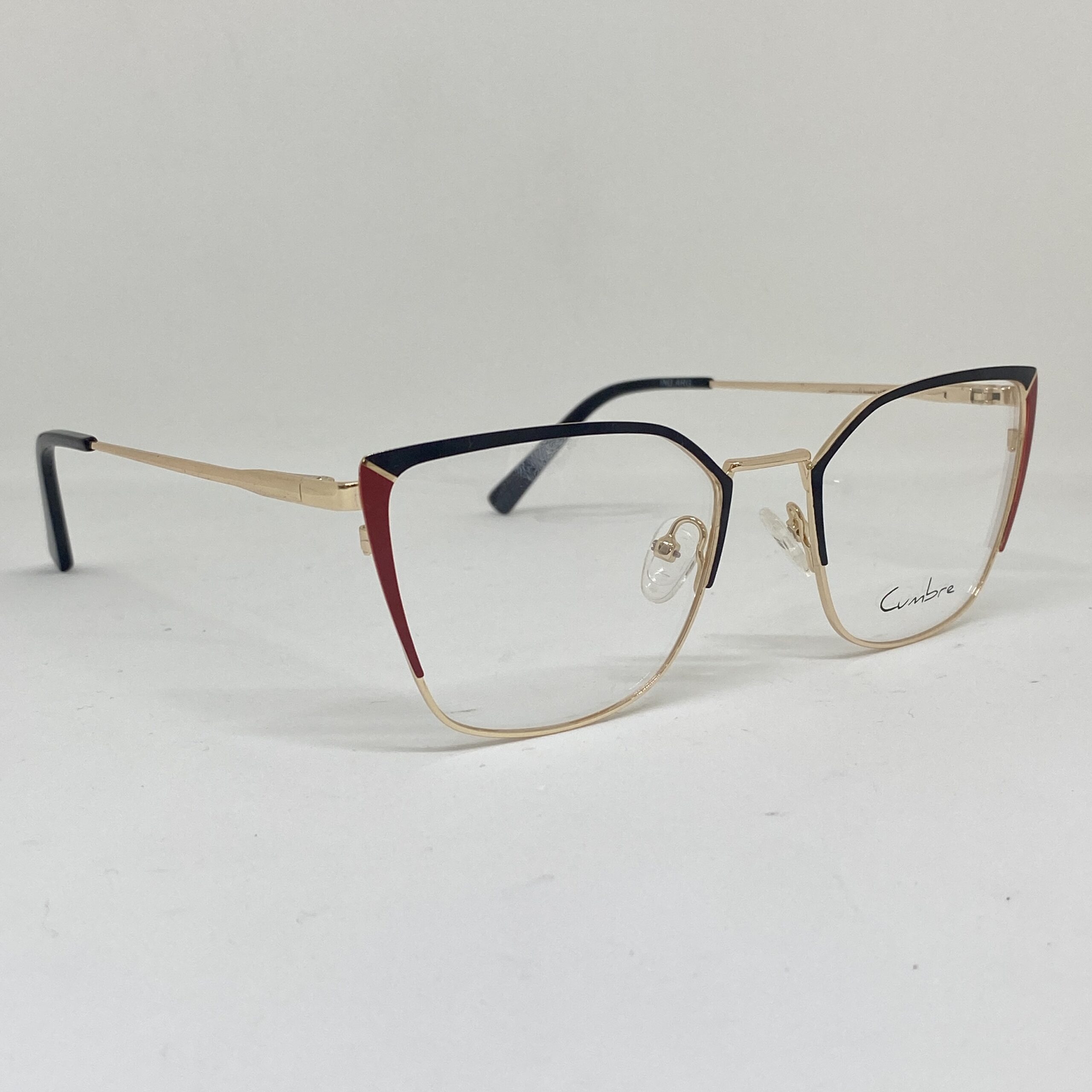 Este modelo combina un diseño moderno y sofisticado con una estética urbana y funcional. El armazón óptico presenta una estructura metálica fina en tono dorado, que aporta ligereza, elegancia y un calce cómodo para el uso diario. A los laterales, se destacan detalles en rojo, que suman un toque de color sutil y distintivo sin perder sobriedad.