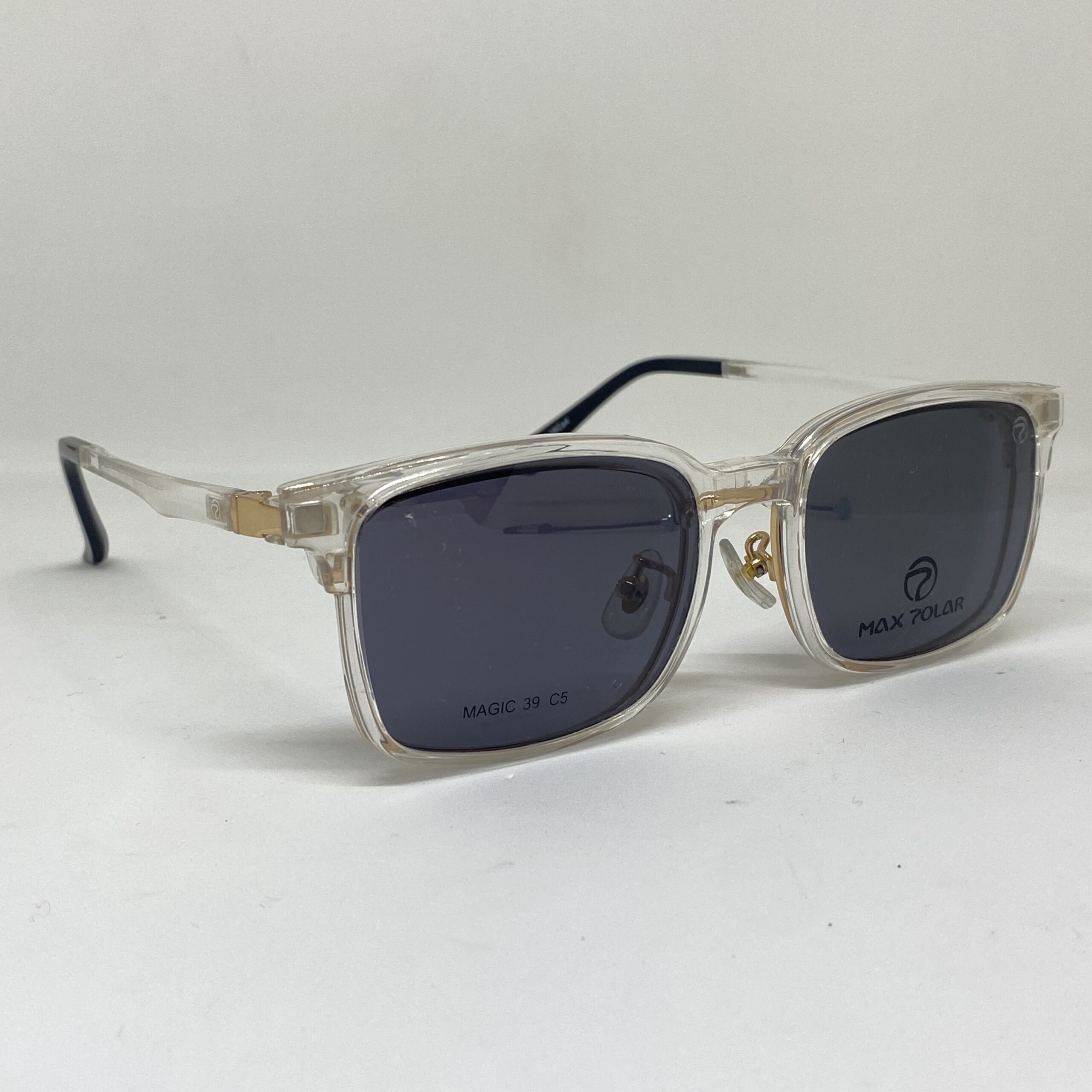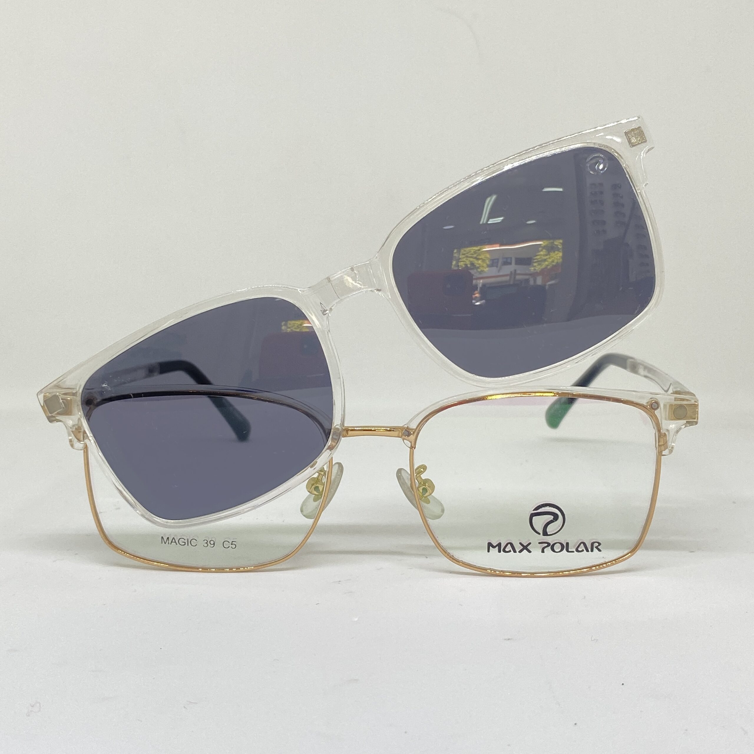 Se acopla magnéticamente cubriendo completamente el frente del anteojo, ocultando el armazón óptico y logrando la apariencia de un anteojo de sol original de una sola pieza. Sus lentes oscuras polarizadas reducen eficazmente los reflejos molestos producidos por superficies como el asfalto, el agua y el vidrio, mejorando notablemente el contraste y la nitidez visual.