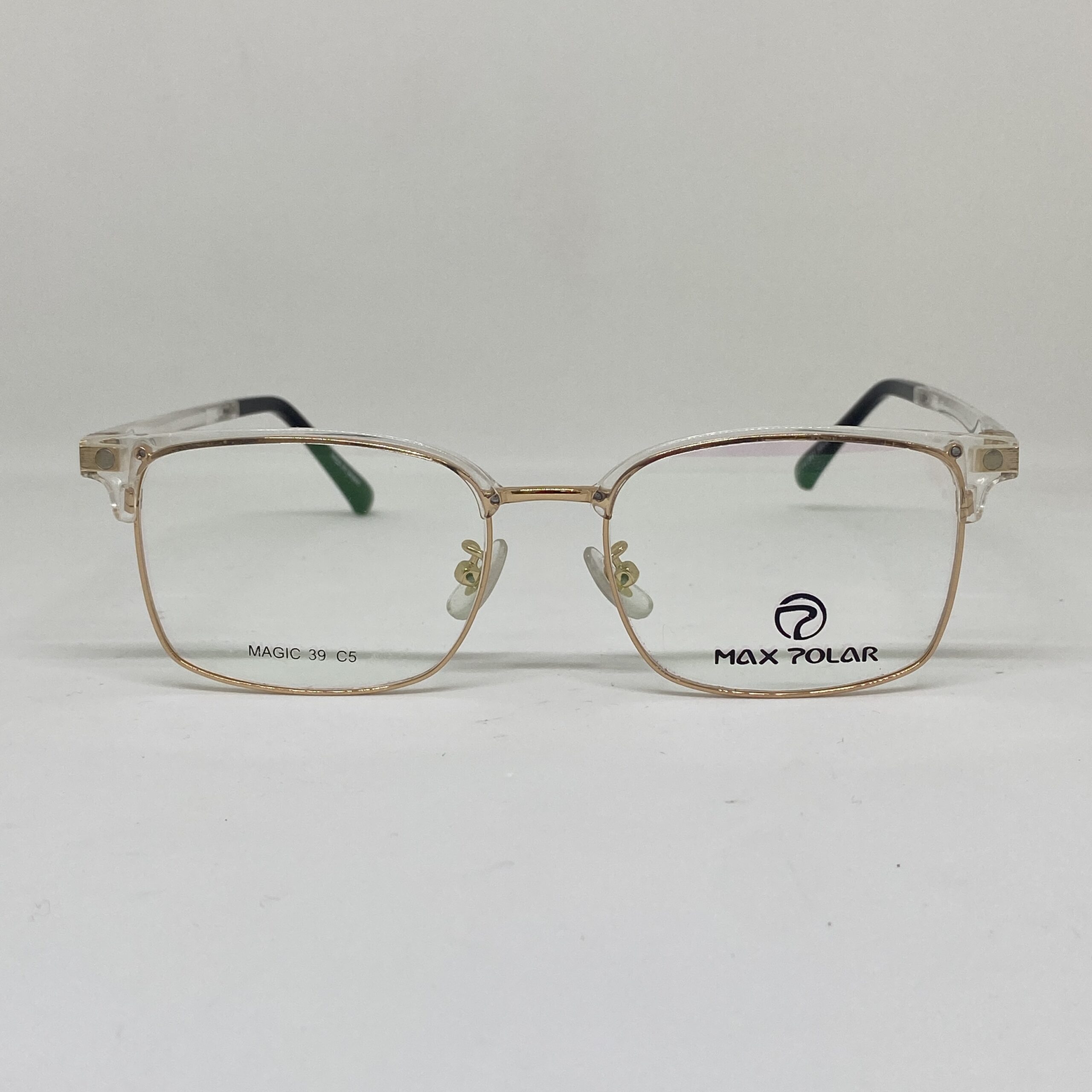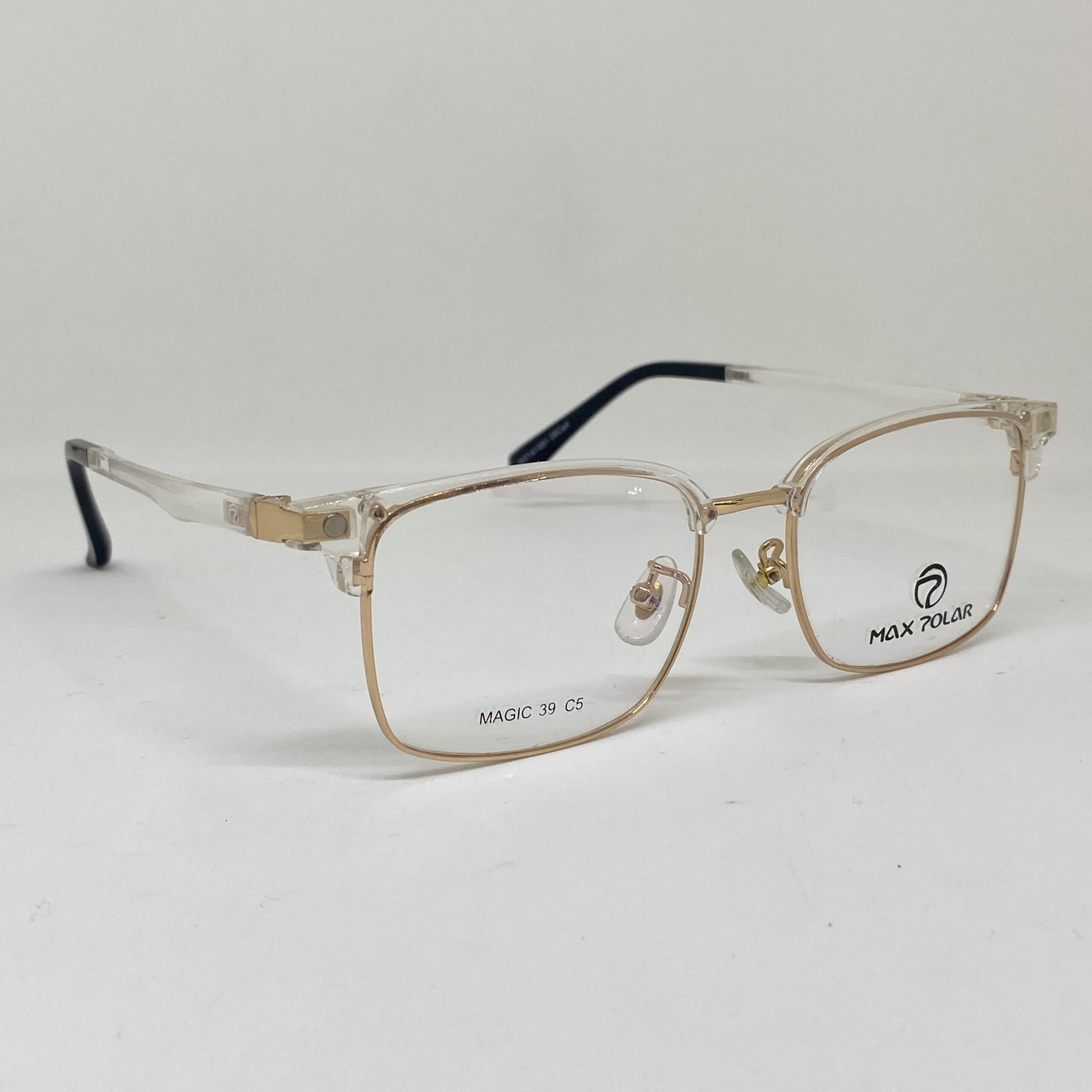 Este modelo combina un estilo moderno y liviano con una estética fresca y elegante. El armazón base presenta una estructura metálica fina en tono dorado, que aporta delicadeza, resistencia y comodidad para el uso diario. El frente superior en acetato cristal transparente suma luminosidad y un look actual, ideal para quienes buscan un diseño sofisticado pero versátil.
