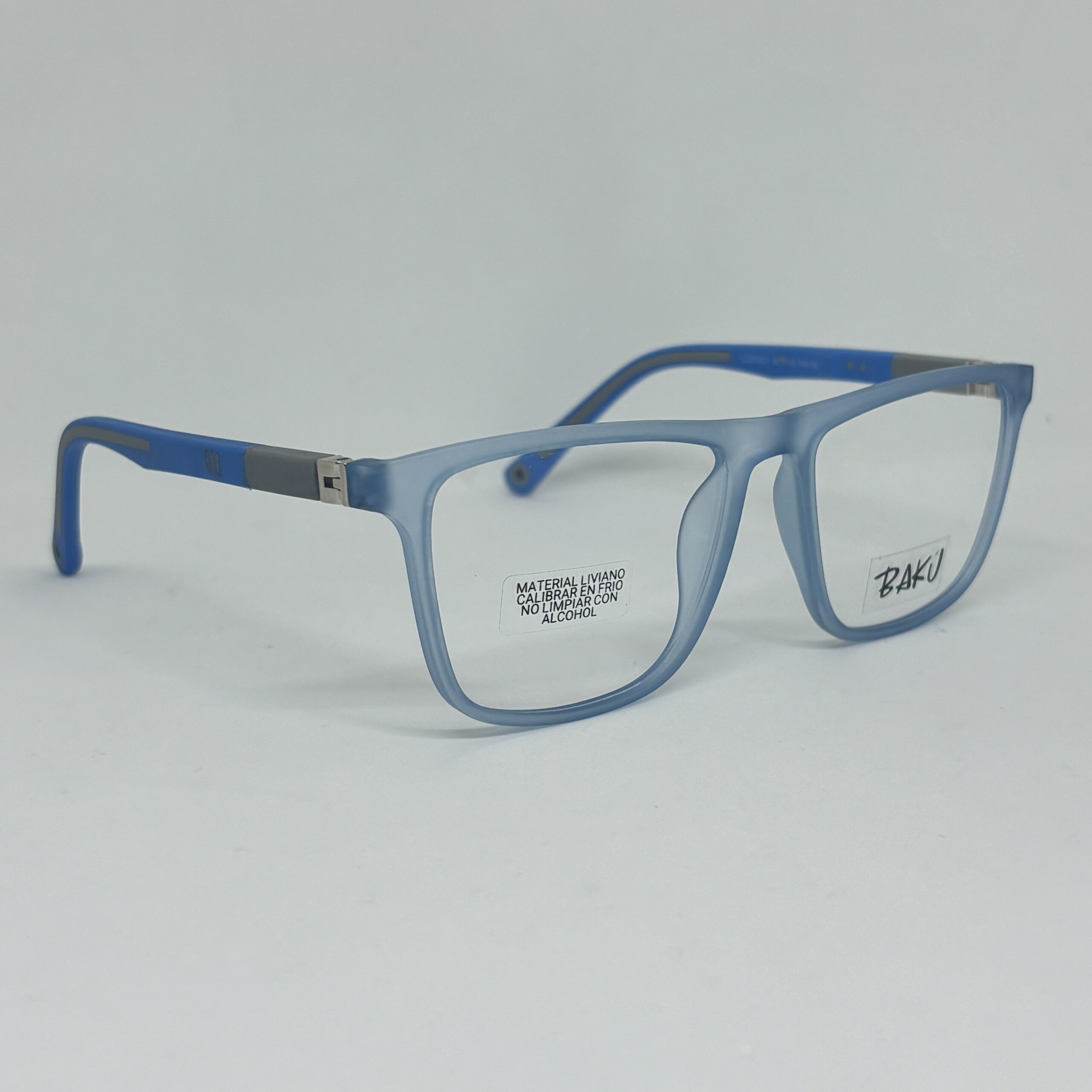 El frente está realizado en un atractivo celeste traslúcido, un color fresco y juvenil que le da un toque divertido sin perder versatilidad. Las varillas combinan tonos celestes con detalles en gris, logrando un diseño dinámico y llamativo.