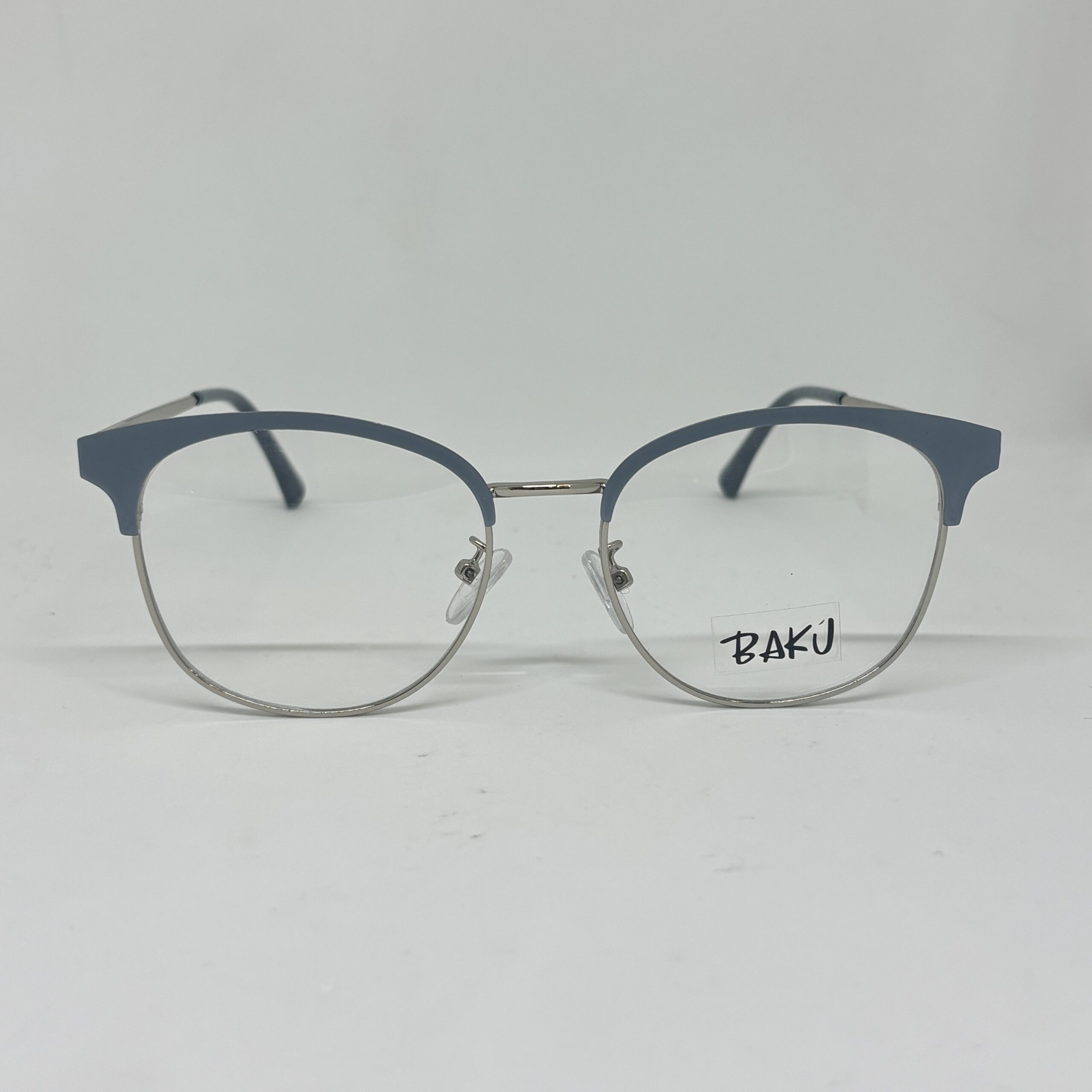El frente metálico en tono plateado se combina con un detalle superior en color celeste aero, logrando un contraste fresco y sofisticado. Es un modelo liviano y versátil, perfecto tanto para el uso diario como para quienes quieren un diseño distintivo y refinado.