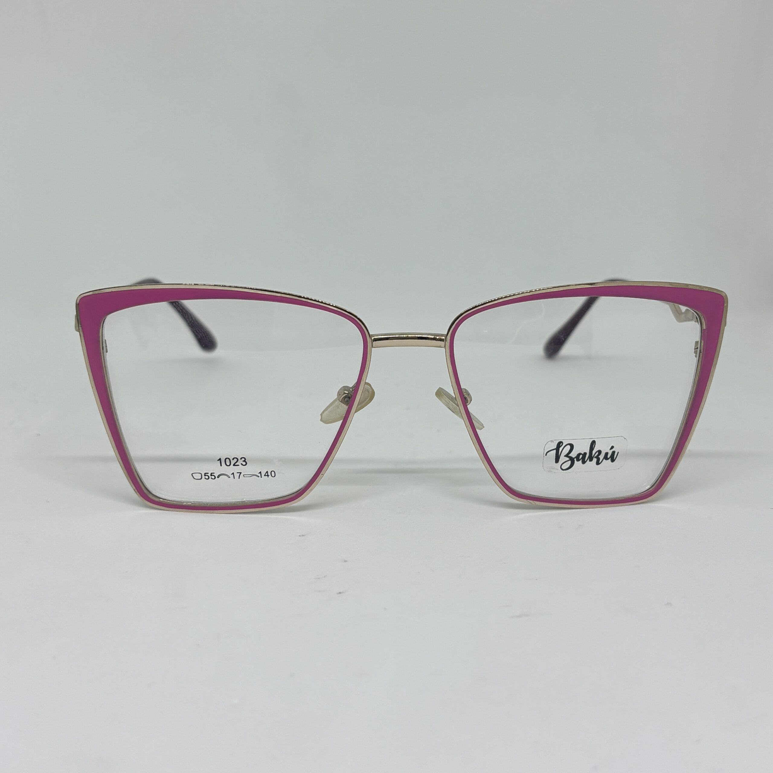 El frente combina una estructura metálica fina con un contorno en tono fucsia vibrante, que realza la mirada y suma un detalle distintivo sin perder delicadeza. Es un modelo ideal para quienes quieren que sus anteojos sean un accesorio protagonista.