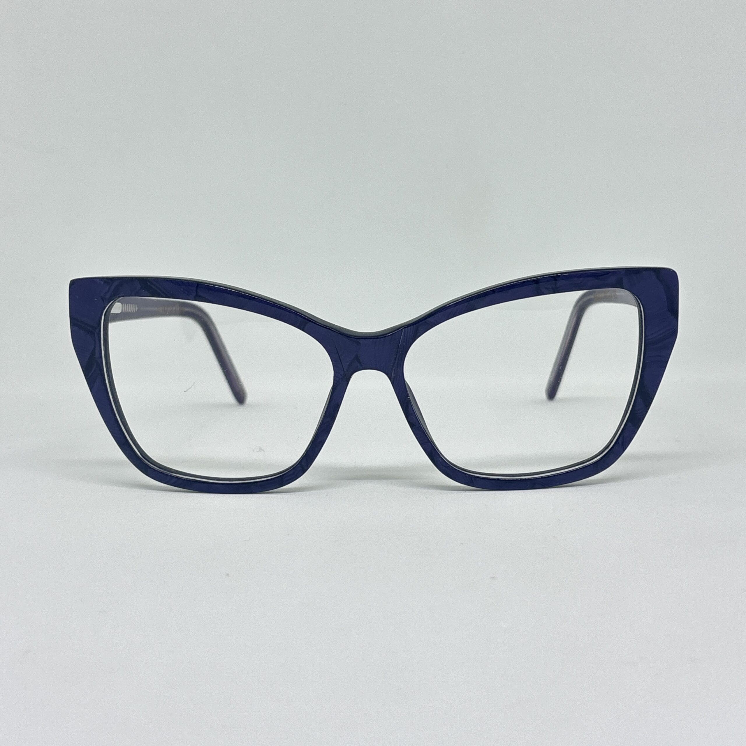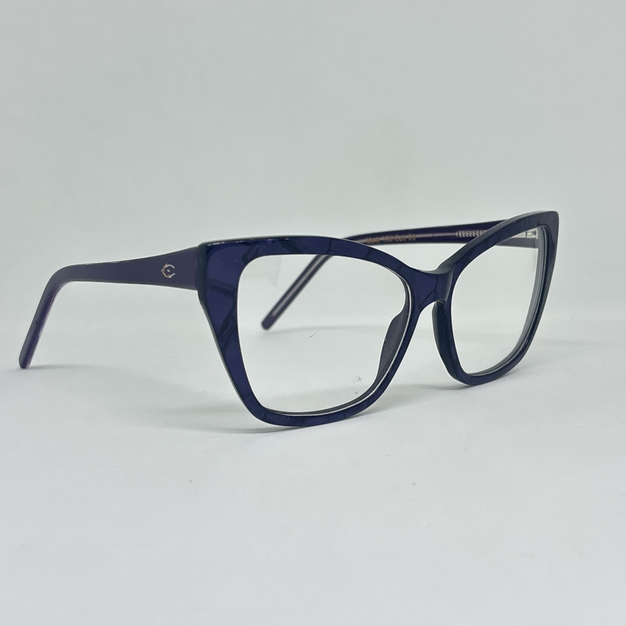 El frente en violeta profundo le da un toque sofisticado y actual, permitiendo que la luz resalte sutilmente el material. Las patillas mantienen la misma línea de color, logrando un conjunto armónico y refinado.